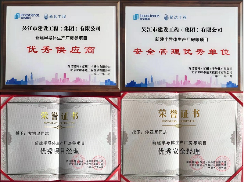歷經(jīng)兩年半精心施工,方洪衛(wèi)經(jīng)理和他的英諾賽科工程建設(shè)團(tuán)隊(duì)交出了完美的答卷,在建設(shè)單位召集的工程總結(jié)表彰會(huì)上,一舉獲得了“優(yōu)秀供應(yīng)商”“安全管理優(yōu)秀單位”、“優(yōu)秀項(xiàng)目經(jīng)理”、“優(yōu)秀安全經(jīng)理”等獎(jiǎng)項(xiàng)。方經(jīng)理在總結(jié)會(huì)上代表吳江建工發(fā)言,向建設(shè)單位和EPC總包表達(dá)了深深的感謝和祝福,方經(jīng)理表示,承建英諾新建半導(dǎo)體廠房工程,是對(duì)自身施工管理水平的極大考驗(yàn),工程全過(guò)程高標(biāo)準(zhǔn)嚴(yán)要求,極大地提升了團(tuán)隊(duì)技術(shù)和管理水平,期待與建設(shè)單位保持良好合作,共同開創(chuàng)芯片事業(yè)新篇章!